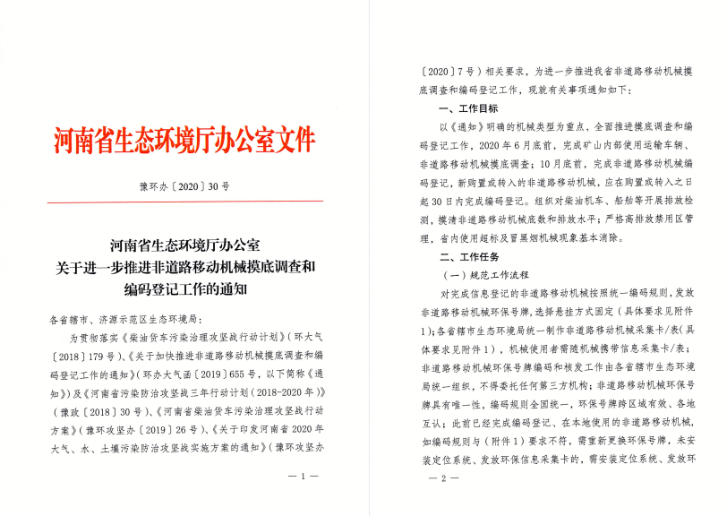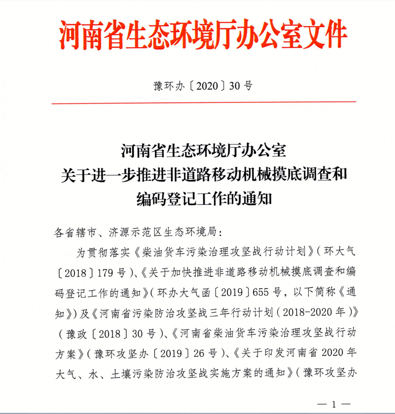 河南省生态环境厅关于进一步推进非道路移动机械摸底调查的通知
