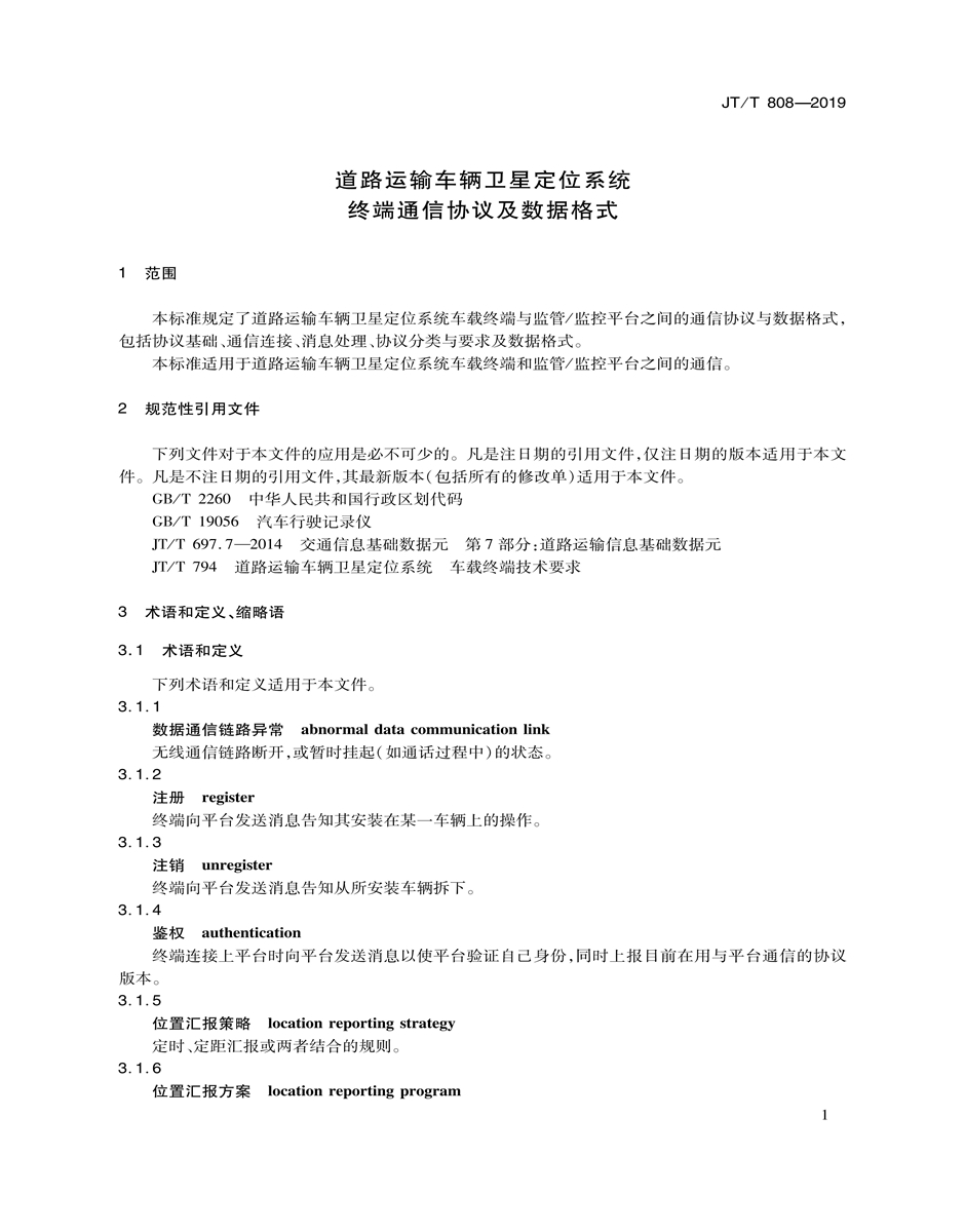 JT/T808-2019道路运输车辆卫星定位系统(终端技术规范)