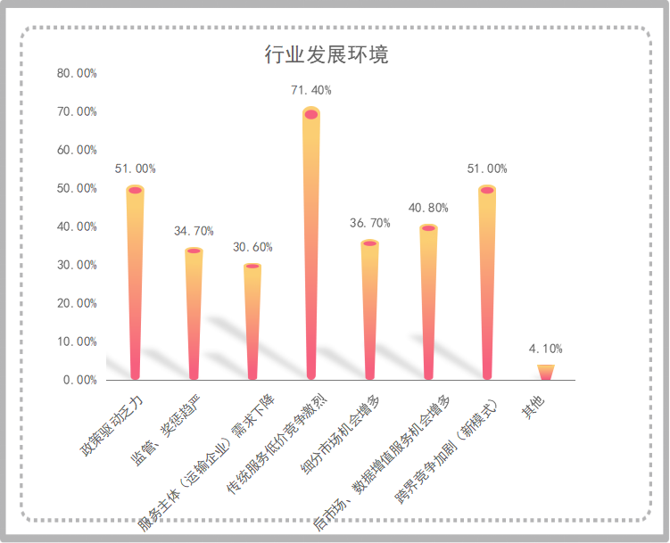 让人意外的是,网络货运平台发展的关注度在持续下降,从2020年的49.3%下降到2022年的34.7%。网络货运平台政策利好,也不缺市场,但还是得不到运营商的重视,主要由于网络货运平台发展尚处于初级阶段,在高速发展的同时,也面临着数据真实性有待提高、税务违规乱象频发、盈利模式单一、恶性竞争等问题。随着竞争日趋激烈,规范经营秩序、消除恶性竞争,越来越成为网络货运行业发展重点关注的问题,整个行业需要逐步走向标准化与规范化。