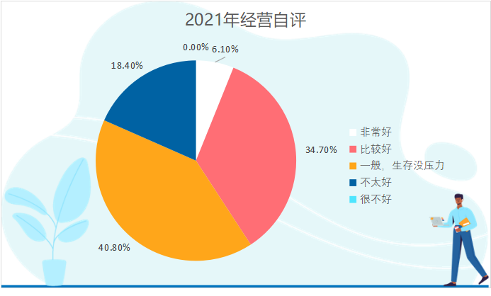2021年应该是行业发展环境相对较差的一年,具体表现为政策驱动乏力,监管、奖惩趋严,传统服务低价竞争激烈,跨界竞争加剧,服务主体(运输企业)需求下降、跨界竞争加剧(新模式),不过细分市场、后市场、数据增值服务带来了不少机会,也就是说车联网行业存量厮杀已经进入白热化阶段,在新兴领域开辟疆土成为不错的选择。虽然行业发展环境一般,但是大多数公司都认为自己经营的还不错,只有18.4%的公司认为自己在2021年的发展不太好。