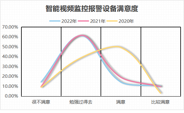 尽管没有统一的强制政策出台,也没有财政支持、补贴政策,但这一年多来,在“粤标”模式的刺激下,同时也在“两客一危”车辆安装智能视频监控报警设备之后成功降低了事故率之后,多地开始试点推动重载货运、渣土车安装智能视频监控报警设备,包括盲区监测等。尽管现在处于全国性政策空白期,也处于防疫的反复持续阶段,但生产安全监管的需求只会强化,而不会弱化。因此全国范围内的重载货运车辆安装智能监控预警分析设备只是时间的问题,是步骤的问题,与之而来的是,设备的质量以及数据的精准、预警的有效性就变得更为重要。有意思的是,2020年是近3年来运营商对智能视频监控报警设备满意度最高的一年,2021年与2022年多数运营商认为在用的智能视频监控报警设备的稳定性、报警的有效性只是勉强过得去,同时,可以看到2021年与2022年设备满意度曲线基本重合,或许可以这么说,这两年智能视频监控报警设备的性能没有多大长进。
