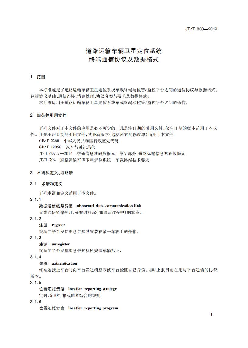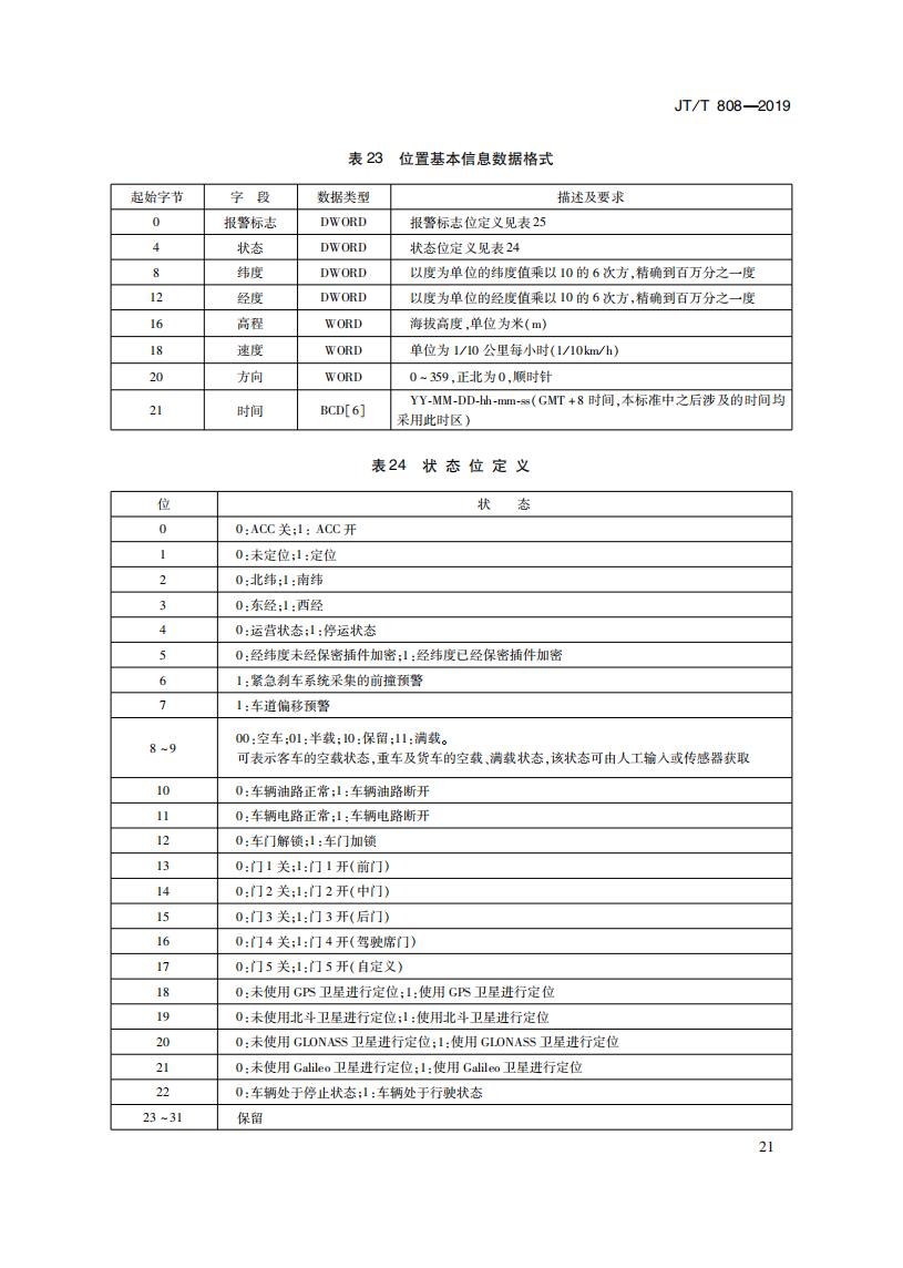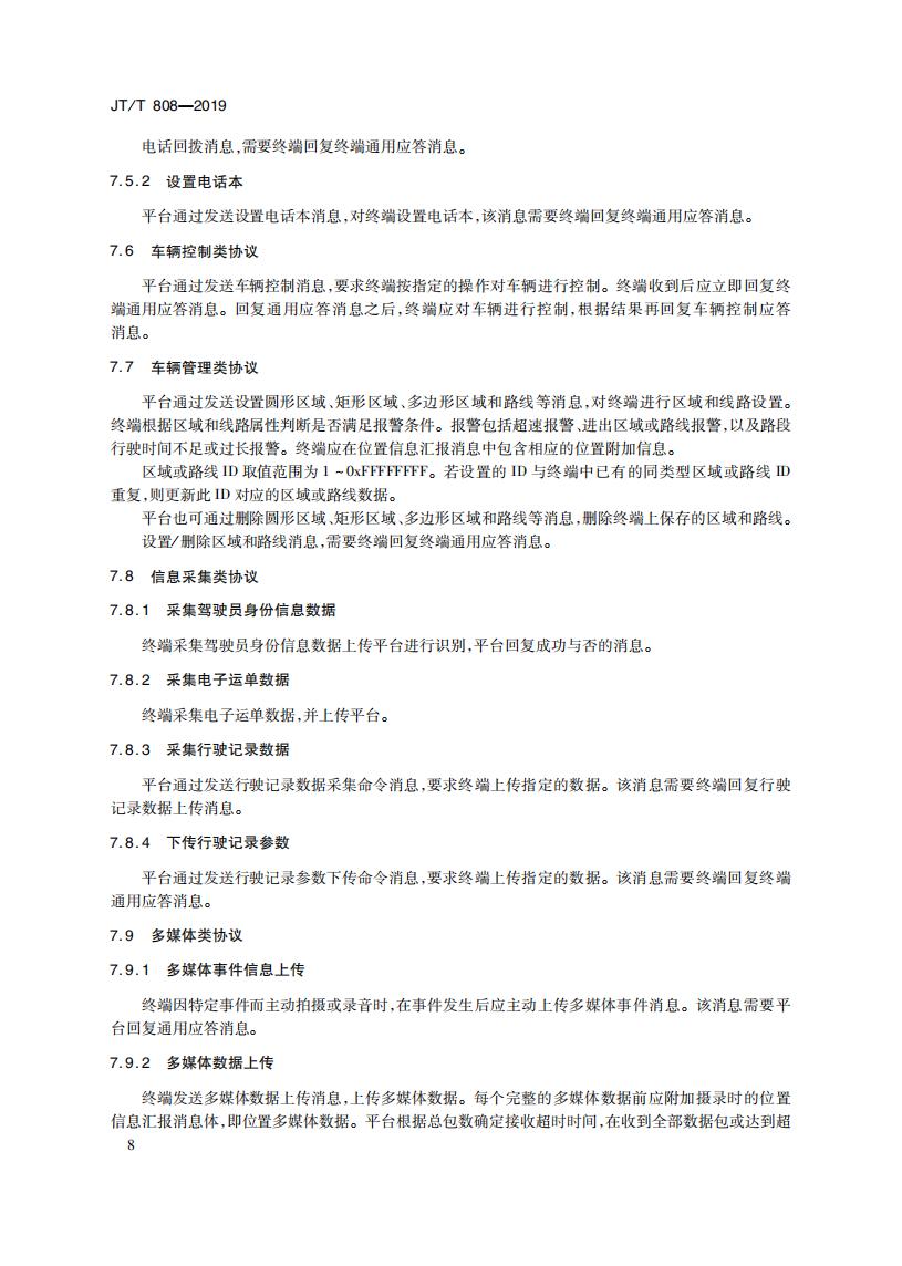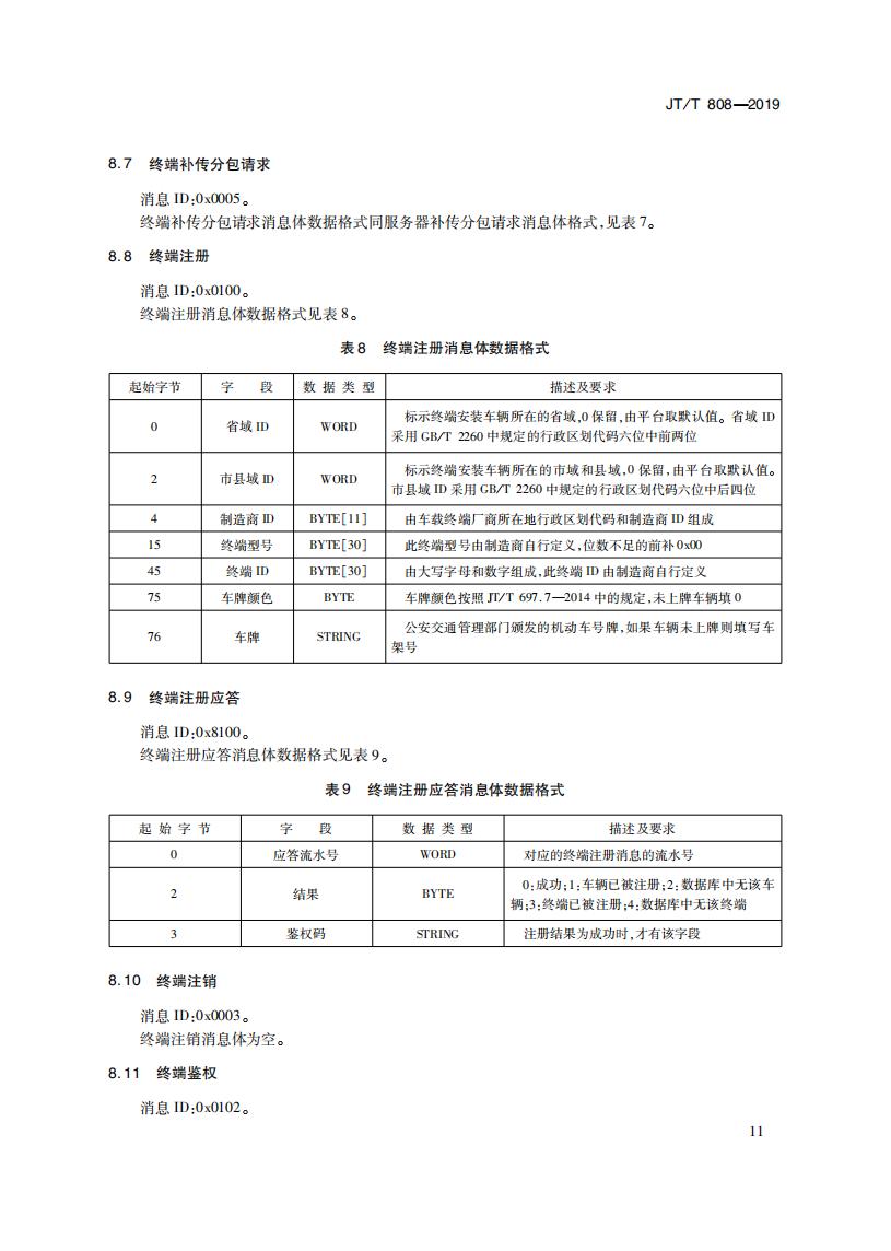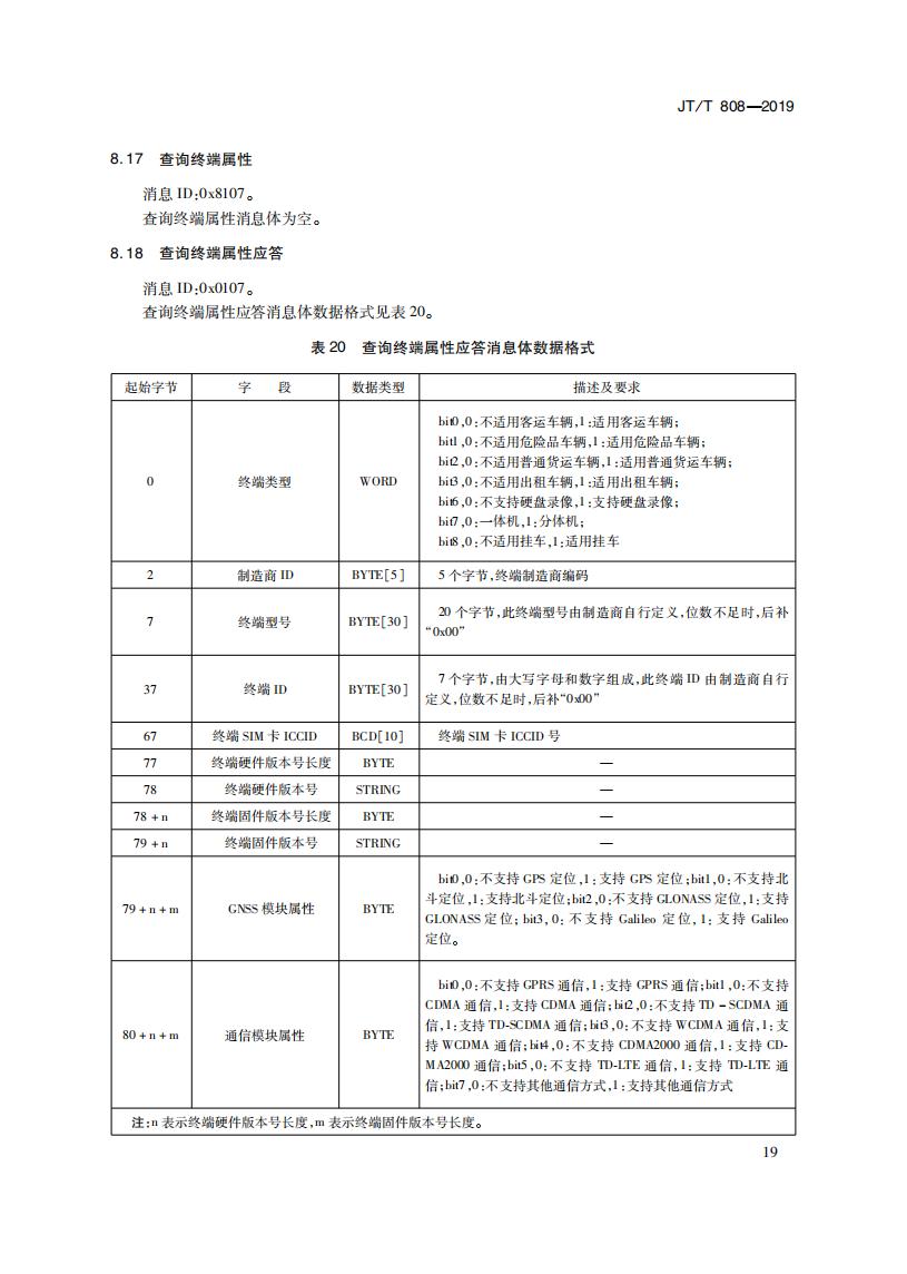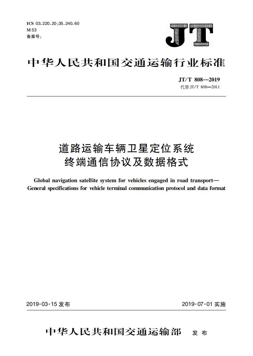 JTT808-2019 道路运输车辆卫星定位系统(终端通信协议及数据格式)
