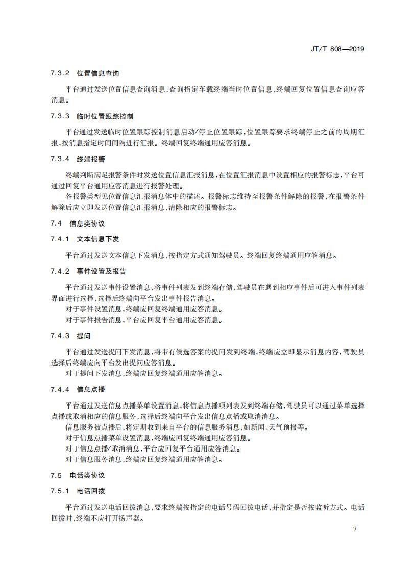 JTT809-2019 道路运输车辆卫星定位系统(平台数据交换)