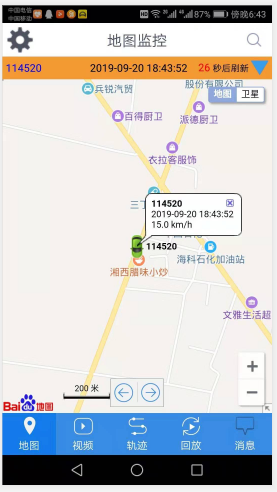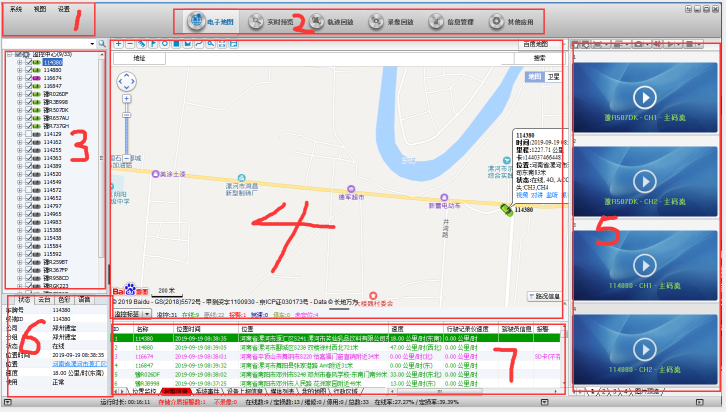 4.实时监控区:在地图上查看设备的位置等信息,可居中定位指定的车辆。