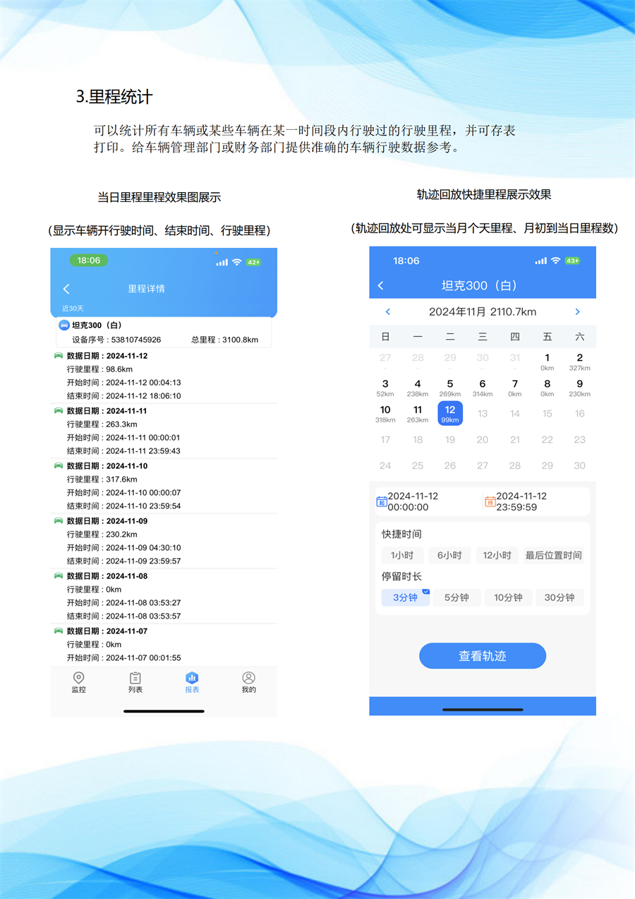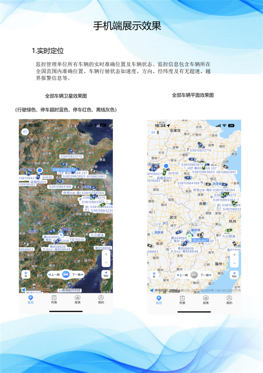 2..北斗定位,定位更精准,具有盲区补和拐点补报里程误差小。